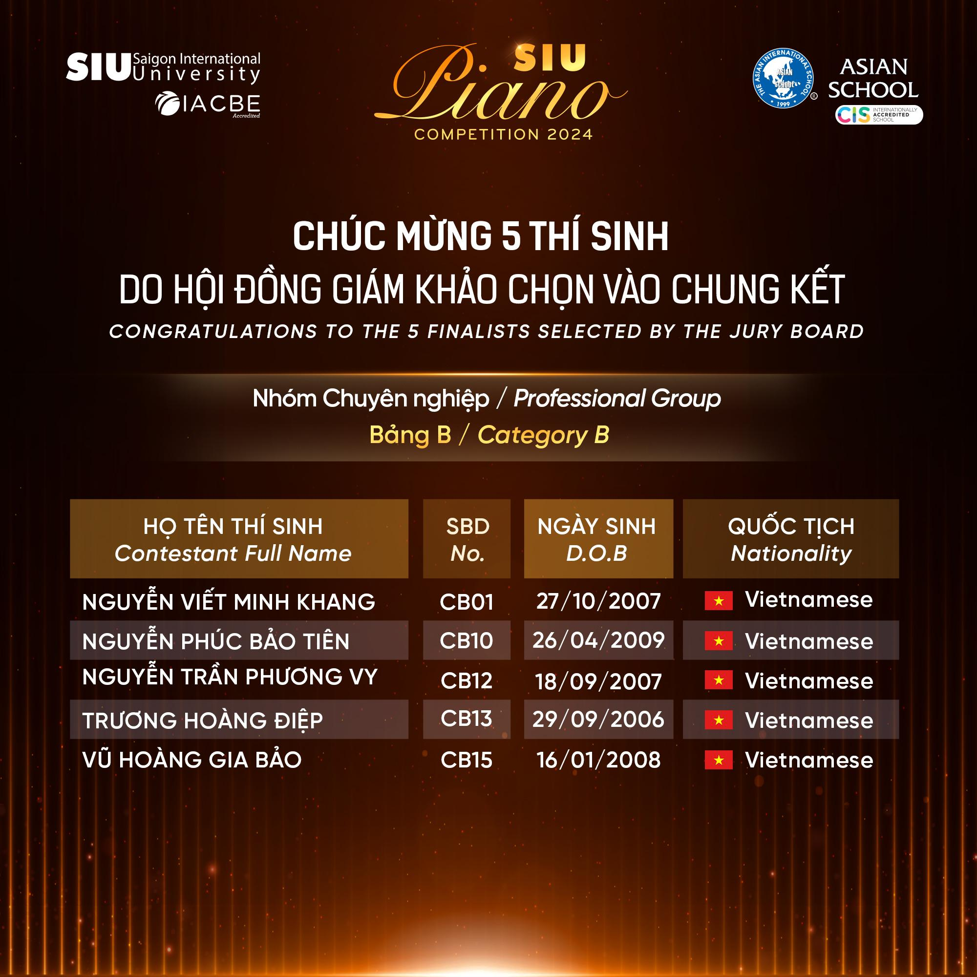 Lộ diện 6 thí sinh nhóm Chuyên nghiệp Bảng B vào vòng Chung kết - SIU Piano