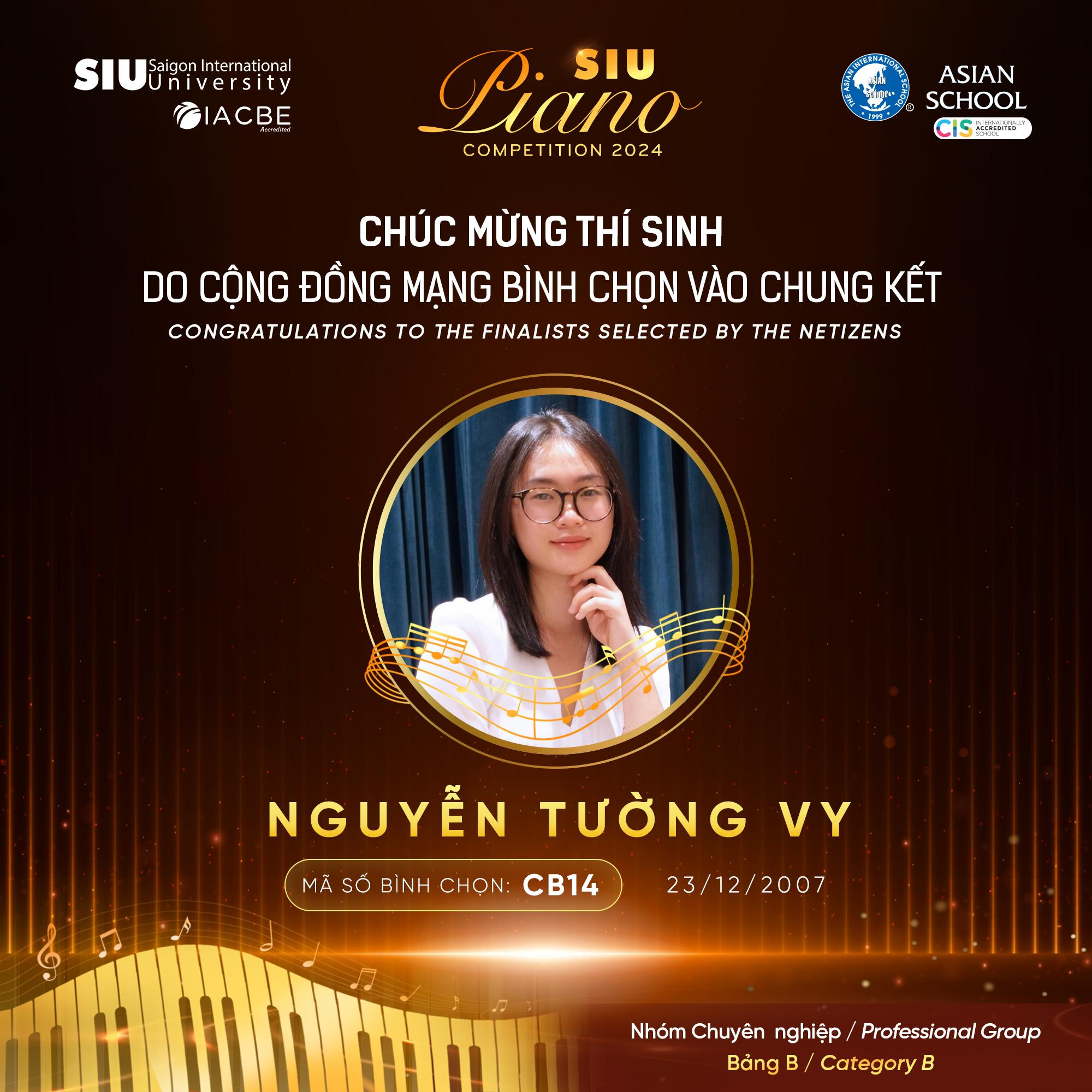 Và chúc mừng Nguyễn Tường Vy – số báo danh CB14 là thí sinh được yêu thích nhất do Cộng đồng mạng bình chọn sẽ góp mặt tranh tài ở vòng Chung kết.